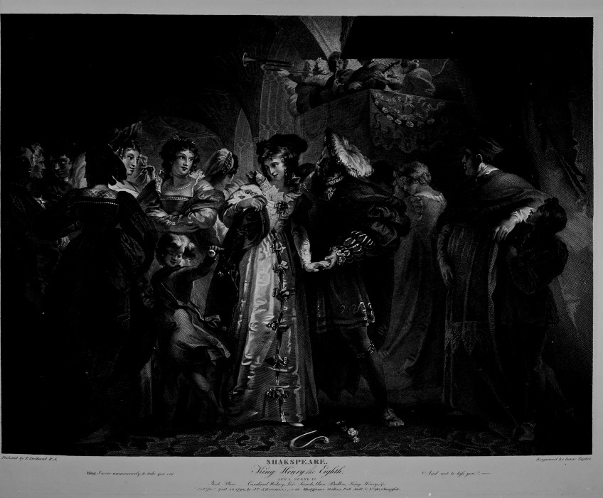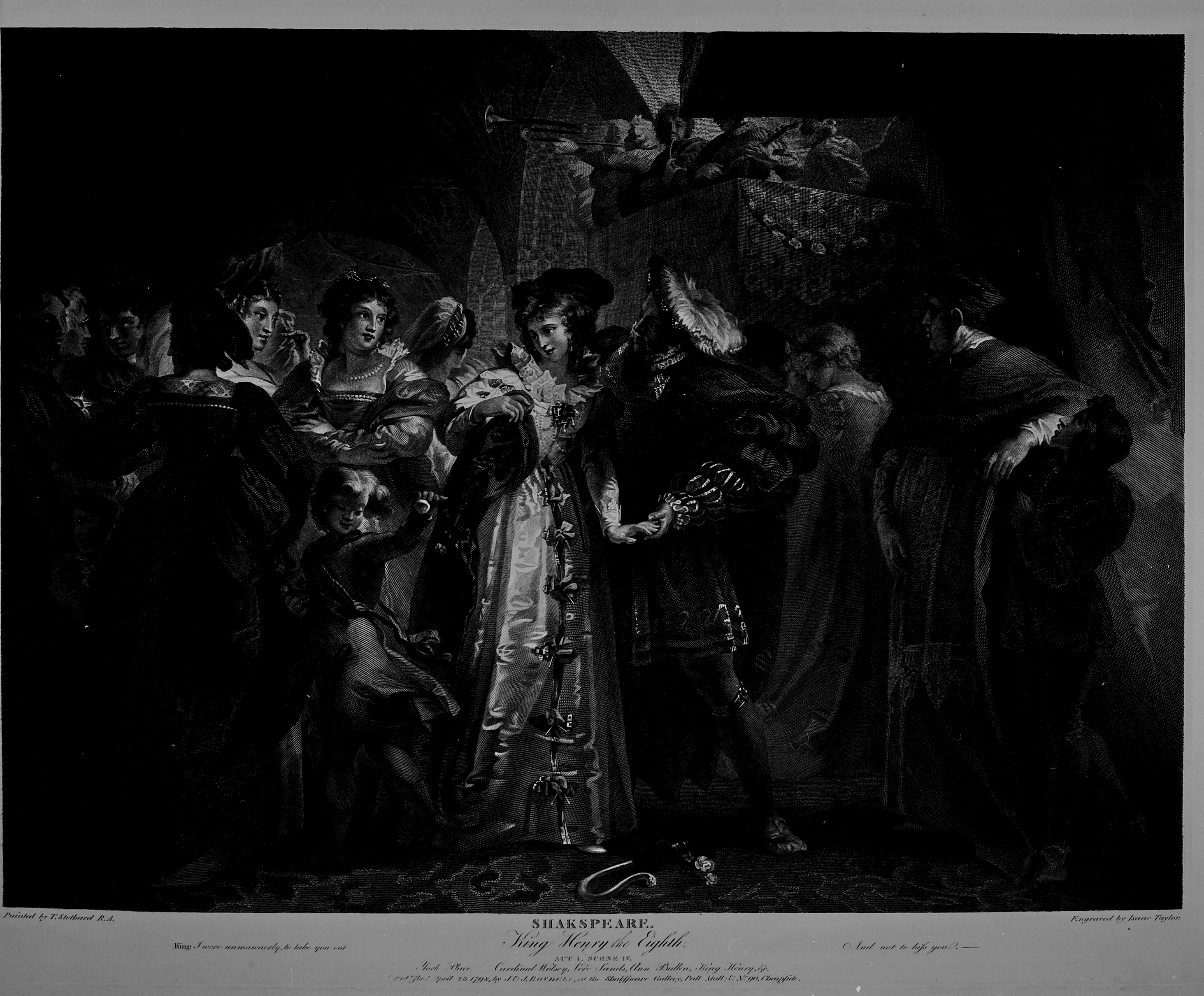 King Henry the Eighth – Act I, Scene IV Published January 21, 2016 at 2926 × 2420 in Shakespeare Gallery Act I, Scene III Painted by T. Stothard R.A. Engraved by Isaac Taylor ‘York Place. Cardinal Wolsey, Lord Sands, Ann Bullen, King Henry, &c.’ King: I were unmannerly, to take you out / And not to kiss you. Like Loading...