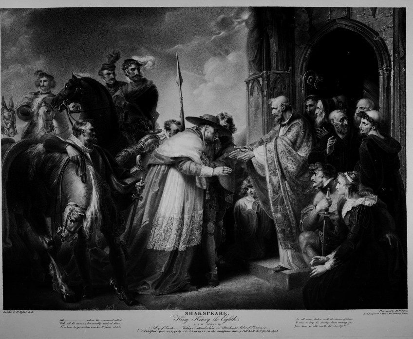 ‘Abbey of Leicester. Wolsey, Northumberland, and Attendants, Abbot of Leicester, &c.’