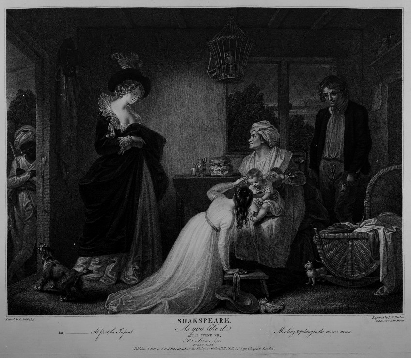 As You Like It – Act II, Scene VII Published June 3, 2015 at 2688 × 2340 in Shakespeare Gallery Act II, Scene VII (a) Painted by R. Smirke, R.A. Engraved by P. W. Tomkins, Histl Engraver to her Majesty ‘The Seven Ages. First Age.’ Jaq. At first the Infant / Mewling & puking in the nurse’s arms: Like Loading...