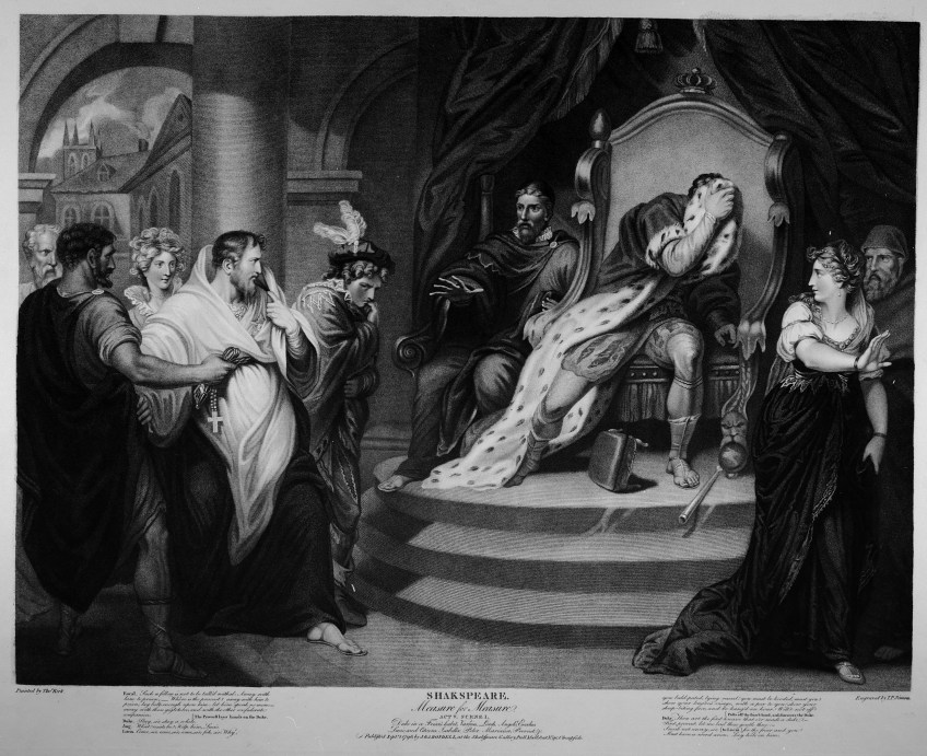 ‘Duke in a Friar’s habit, Various Lords, Angelo, Escalus, Lucio, and Citizens, Isabella, Peter, Mariana, Provost, &c.’