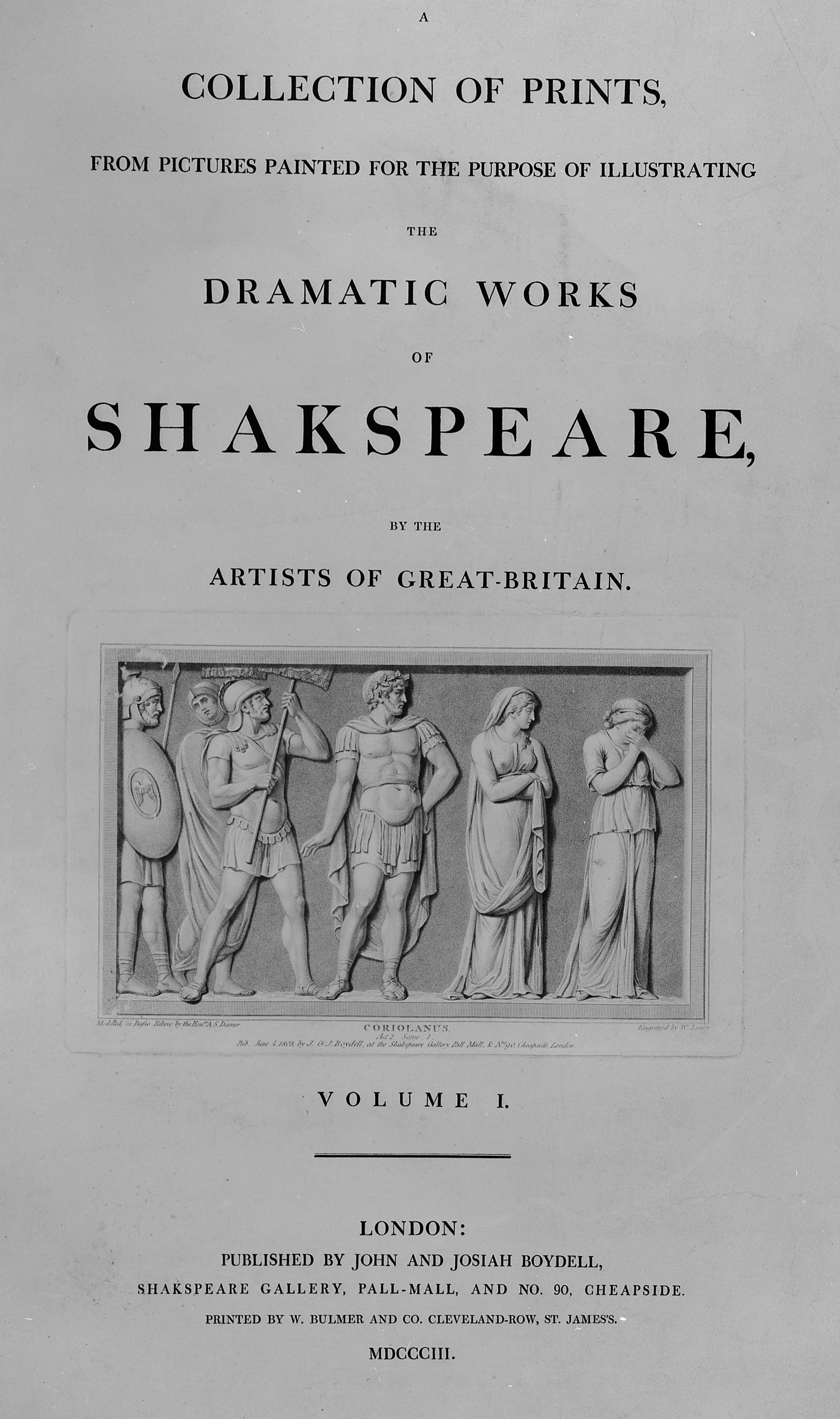 Volume I Title Page Published July 10, 2015 at 1774 × 2996 in Shakespeare Gallery Volume I Title Page A Collection of Prints, from Pictures Painted for the Purpose of Illustrating the Dramatic Works of Shakspeare, by the Artists of Great-Britain. Volume I. London: Published by John and Josiah Boydell, 1803 Like Loading...